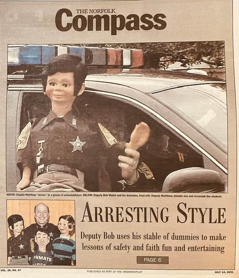 Brad Ward with Bob Walsh promoting the Norfolk Sheriff’s Office. McGruff, and Japanese ventriloquists having a good time with puppets.