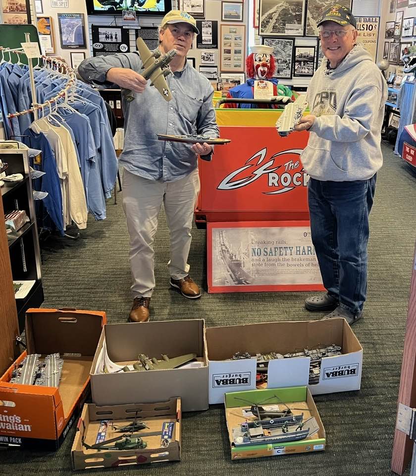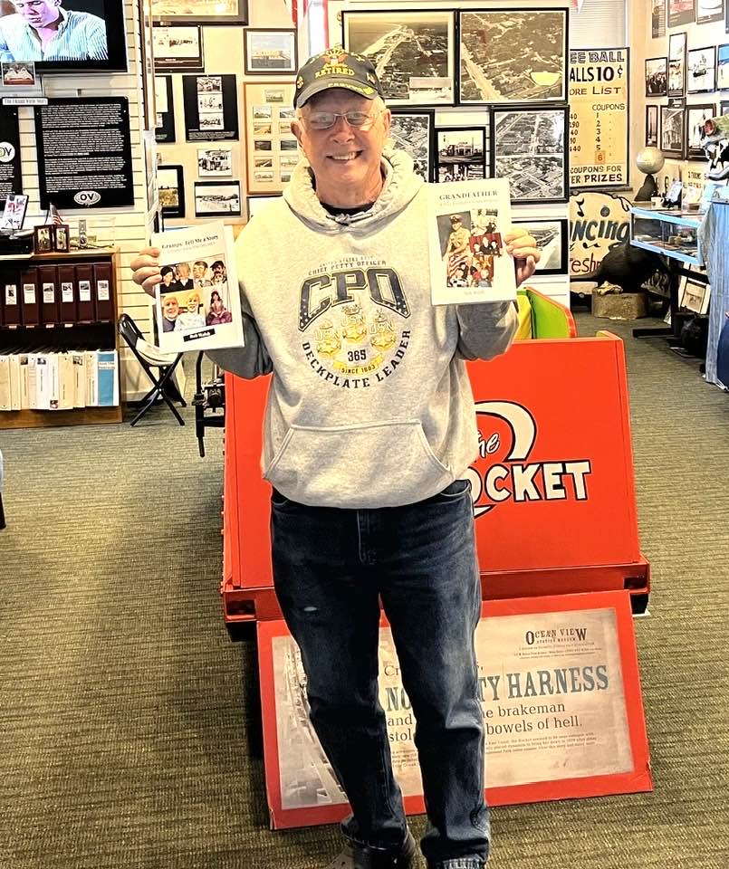 Director, Ocean View Station Museum (inside Pretlow Library) Larry Estes receiving the military plastic model collectlion from Chief Petty Officer (Retired) Bob Walsh, United States Navy. In addition, two authored books for the book rack museum for the public to access (Grandfather: A Man Yielded to God’s Purpose and Gramps: Tell Me A Story). Available on Amazon, Kindle, Kobo and Google Play.